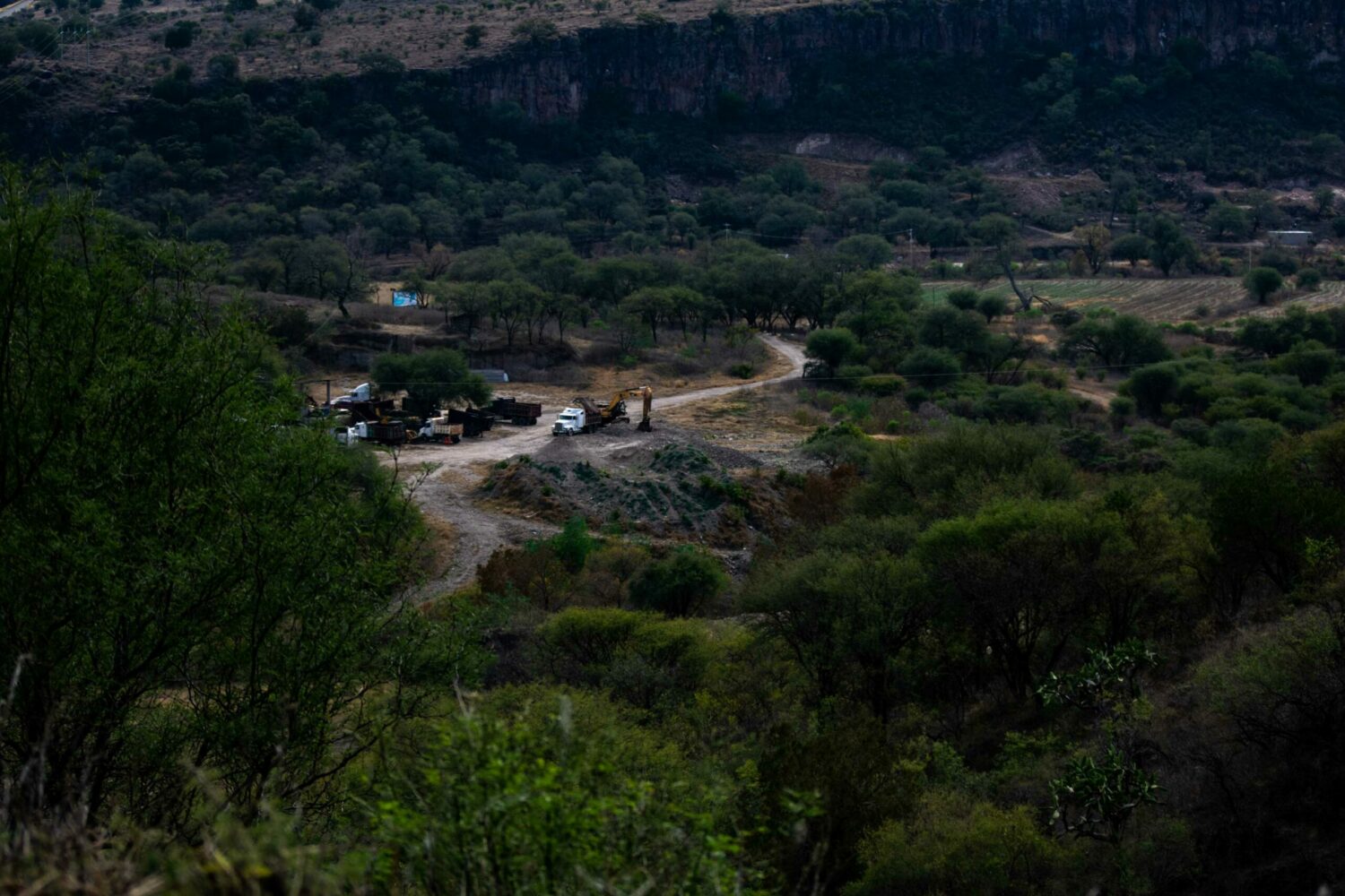 Sobre la misma vía, en dirección hacia el norte, también es posible observar retroexcavadoras, al igual que en el camino que conduce hacia el balneario de Agua Caliente, en la localidad de Palmarejo, ubicada en la ciudad jalisciense llamada Cañadas de Obregón.