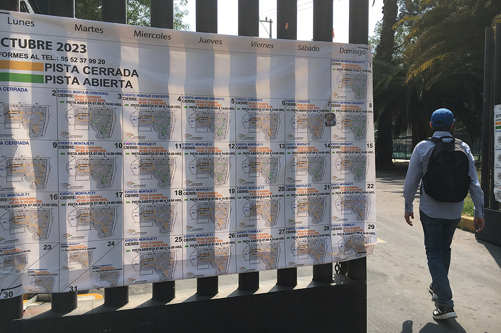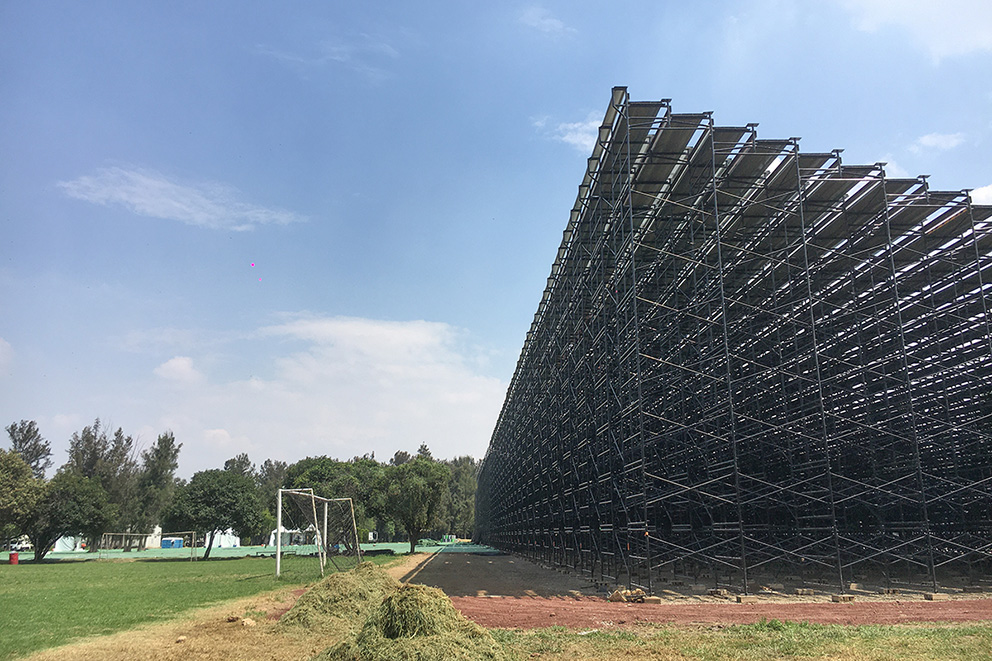 Gradas instaladas en un campo de fútbol para el reciente evento de la Fórmula 1. (Foto: Isabel Briseño).