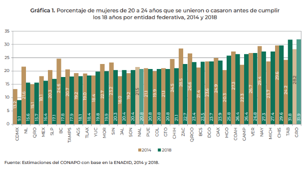 *Gráfica tomada de la página 10 de Niñez interrumpida: Matrimonio infantil y adolescente en México