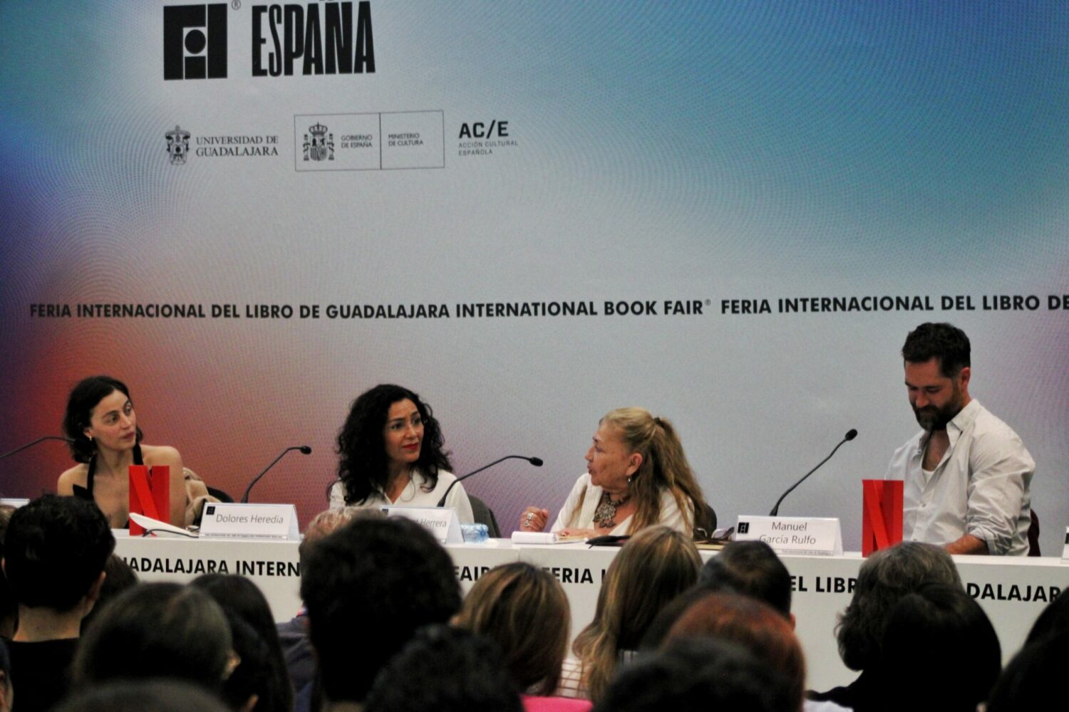 El elenco de la adaptación de Netflix “Pedro Páramo”, Ilse Salas, Dolores Heredia y Manuel García Rulfo junto con la escritora Sara Poot y el director Francisco Payo González dialogaron durante el conversatorio “Pedro Páramo: llevando las palabras de Juan Rulfo a la pantalla”, sobre el proceso creativo detrás de esta adaptación literaria.